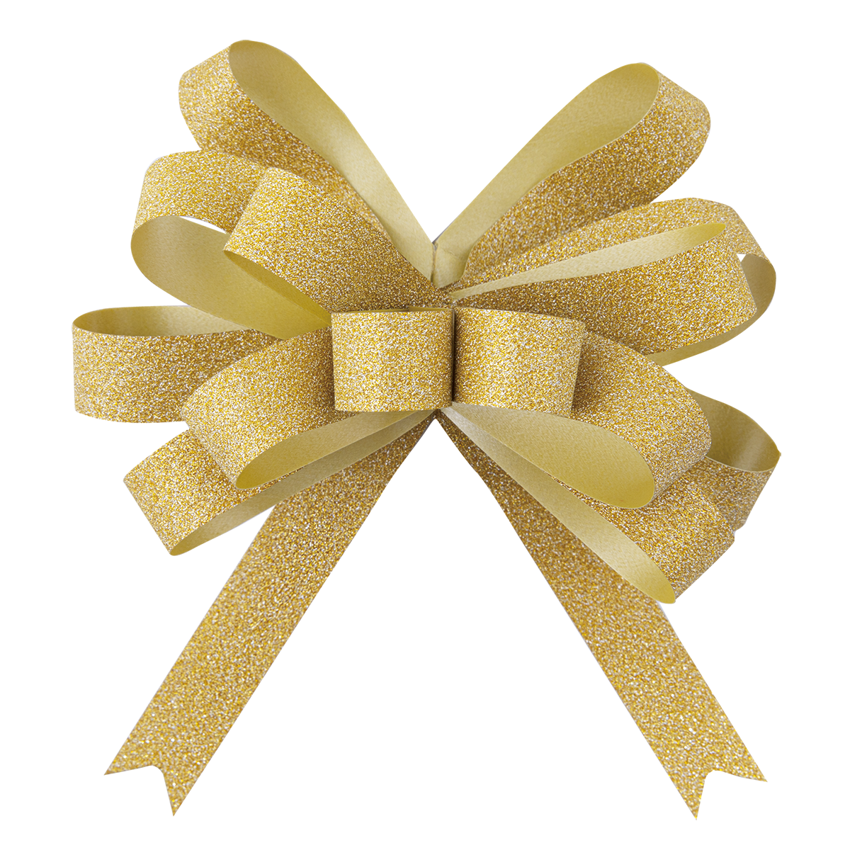 表面は艶消しのグリッターメタリックループボウ。周りの色を反射すること無く、美しいゴールドの色合いが、上品な輝きを欲しい方におすすめです。